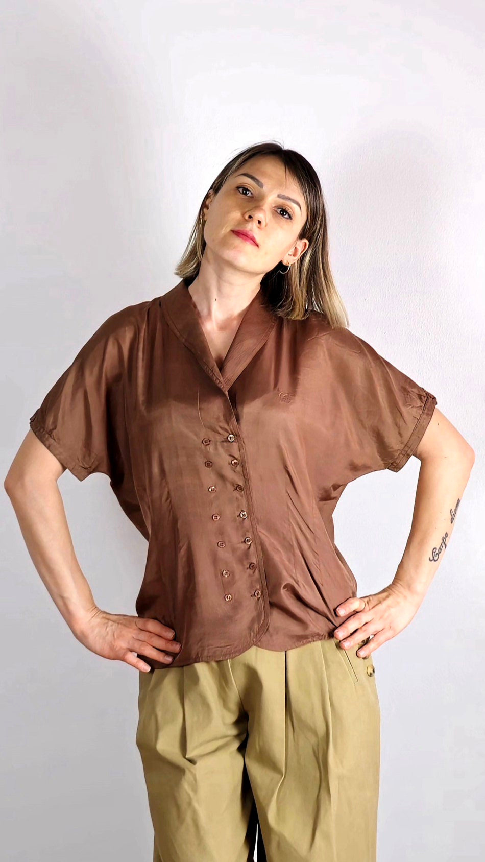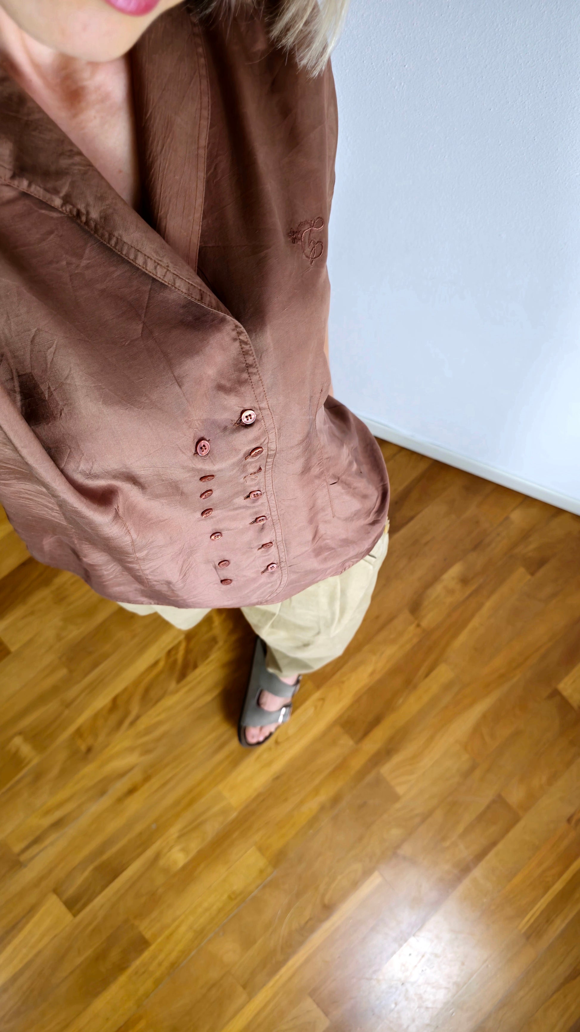 Camicetta Le comte in 100% seta doppio petto e colore cioccolato.